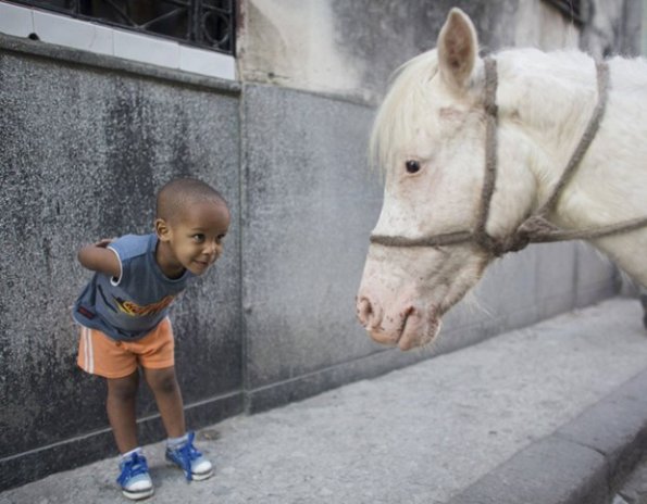 2 yaşındaki bir çocuk 2 yaşındaki Pony cinsi atla göz göze bakışıyor... Havana / Küba