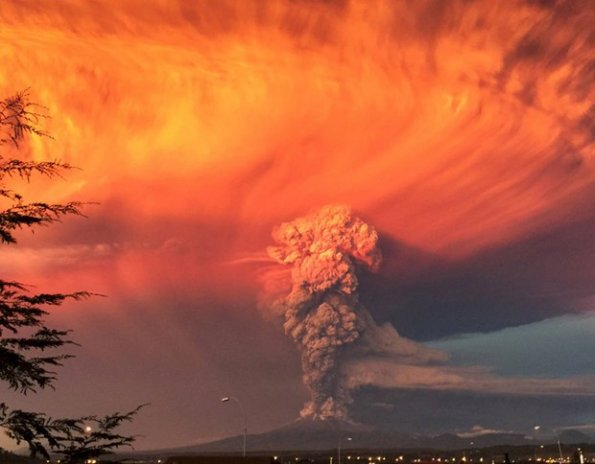 Faaliyete geçen Calbuco volkanının genel görüntüsü Puerto Montt / Şili